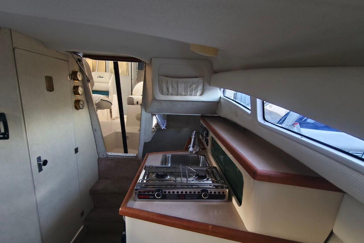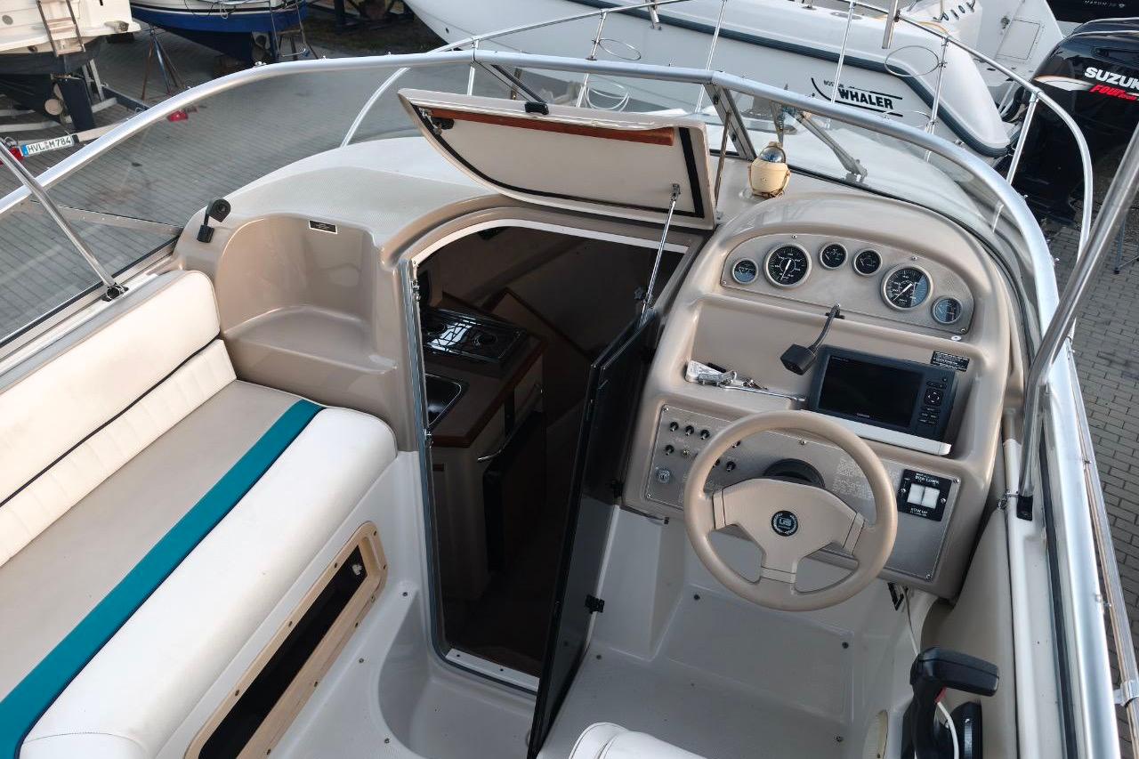 Das Boot präsentiert sich in einem gepflegten Zustand und hat in diesem Jahr einen neuen Unterwasseranstricherhalten. Die Cierra bietet durchdachte Raumaufteilung und angenehmen Komfort an Bord: Der helle Salon verfügt über eine kleine Pantry mit Herd, Spüle und Kühlschrank, sodass auch längere Aufenthalte problemlos möglich sind. Das separate Bad ist mit einer Toilette ausgestattet, und eine Unterflurkabine bietet zusätzlichen Platz zum Schlafen oder Verstauen.