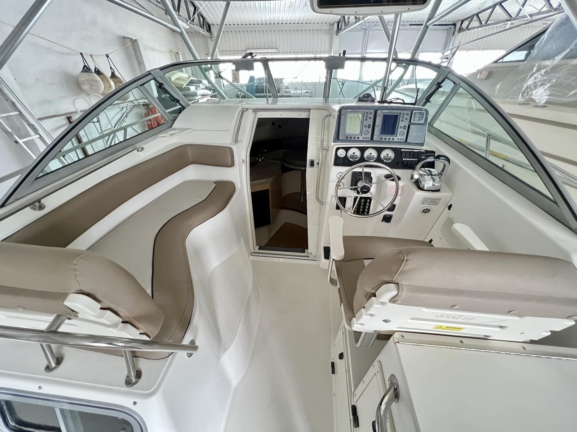 Die geschlossene Hardtop-Kabine schützt zuverlässig vor Wetter und Gischt und bietet gleichzeitig viel Komfort für entspannte Stunden. Mit dem großzügigen Cockpit, der durchdachten Innenraumaufteilung und der hochwertigen Technik ist dieses Boot bereit für jede Herausforderung – ob Tagesausflug, Angeltrip oder Wochenendtour.
