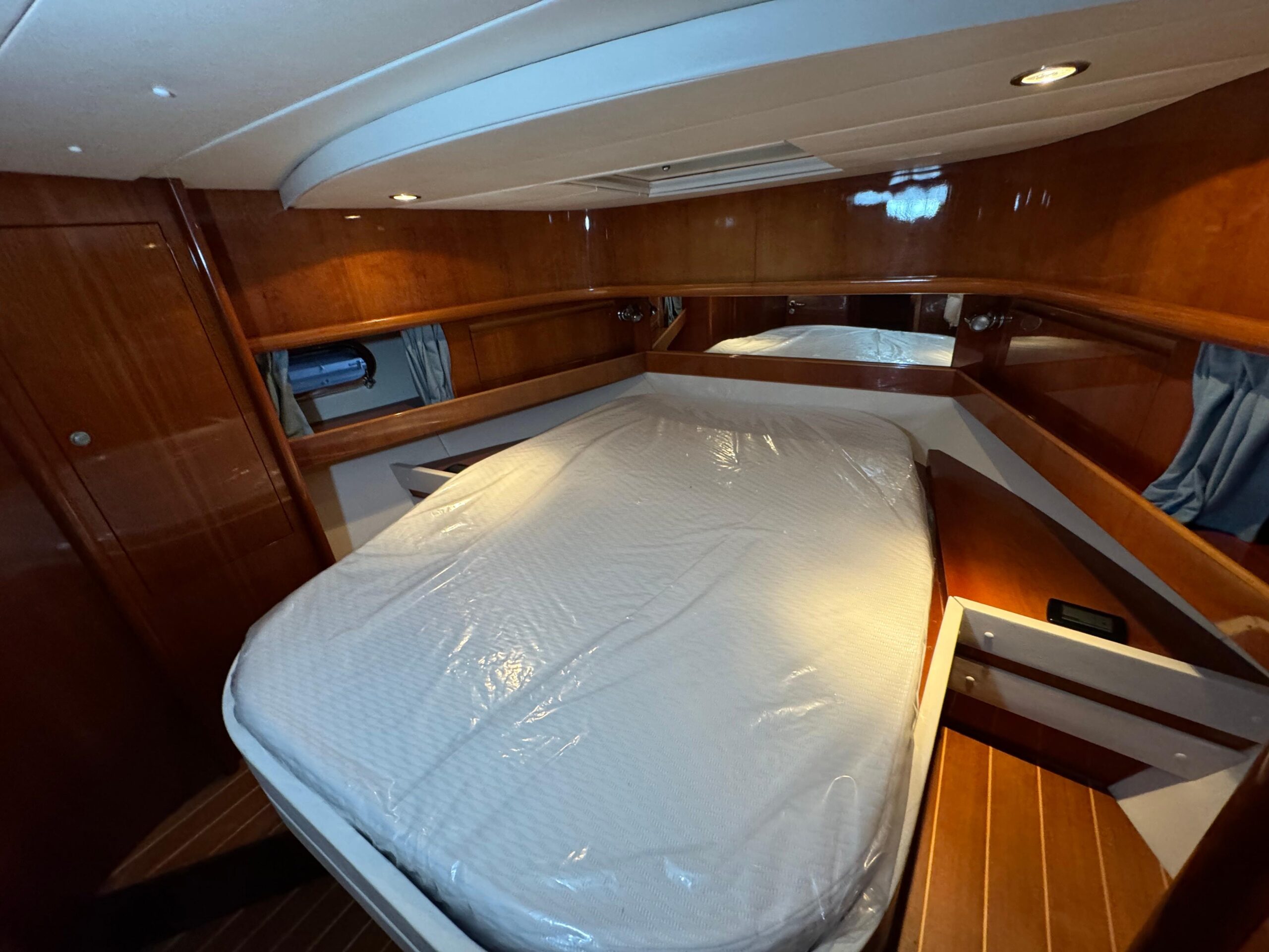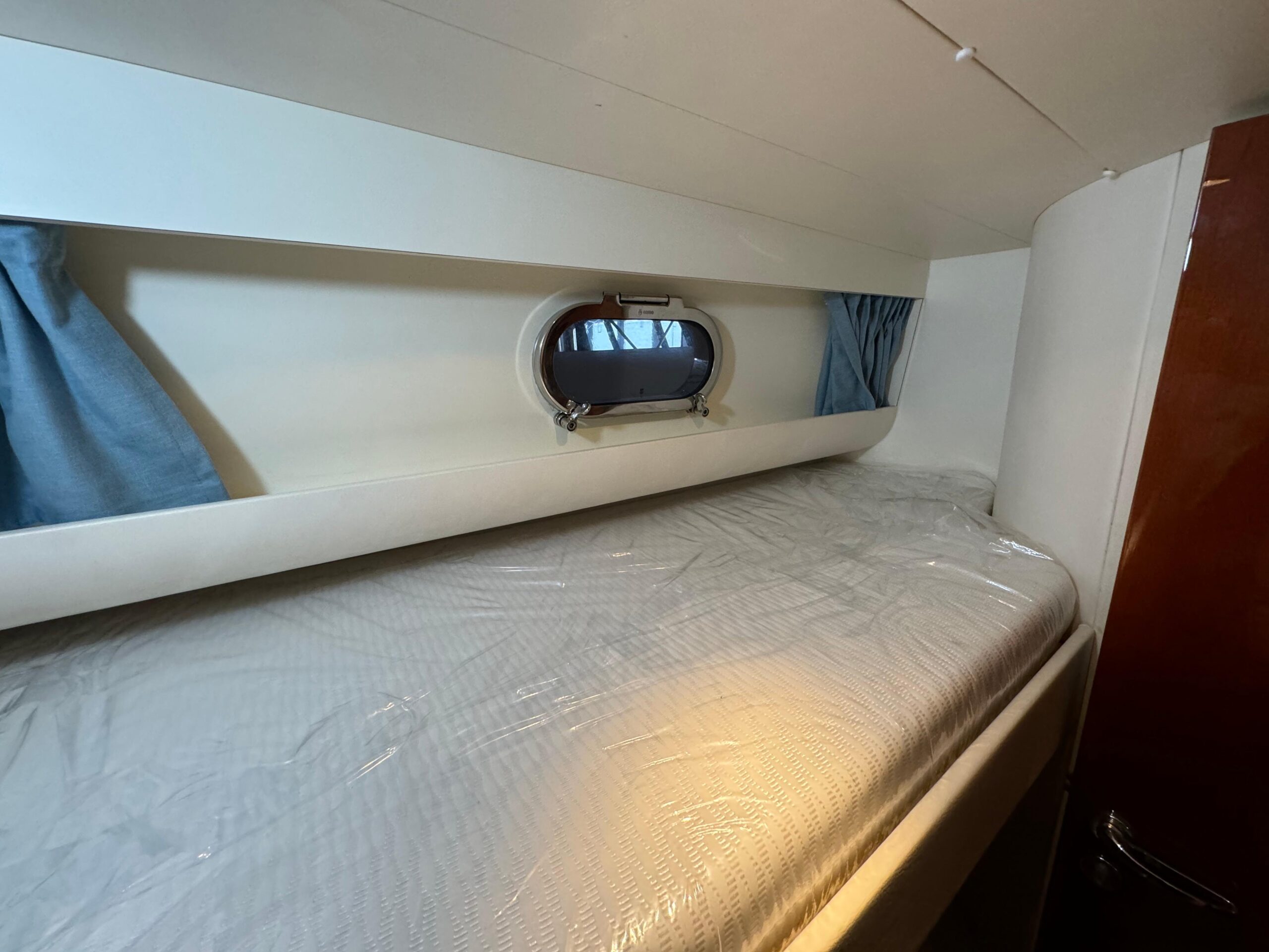 - Kabinen: Die Cayman 38 WA verfügt oft über zwei Kabinen: eine Eignerkabine mit einem Doppelbett und eine Gästekabine mit Etagenbetten. Damit bietet sie Schlafmöglichkeiten für vier Personen.