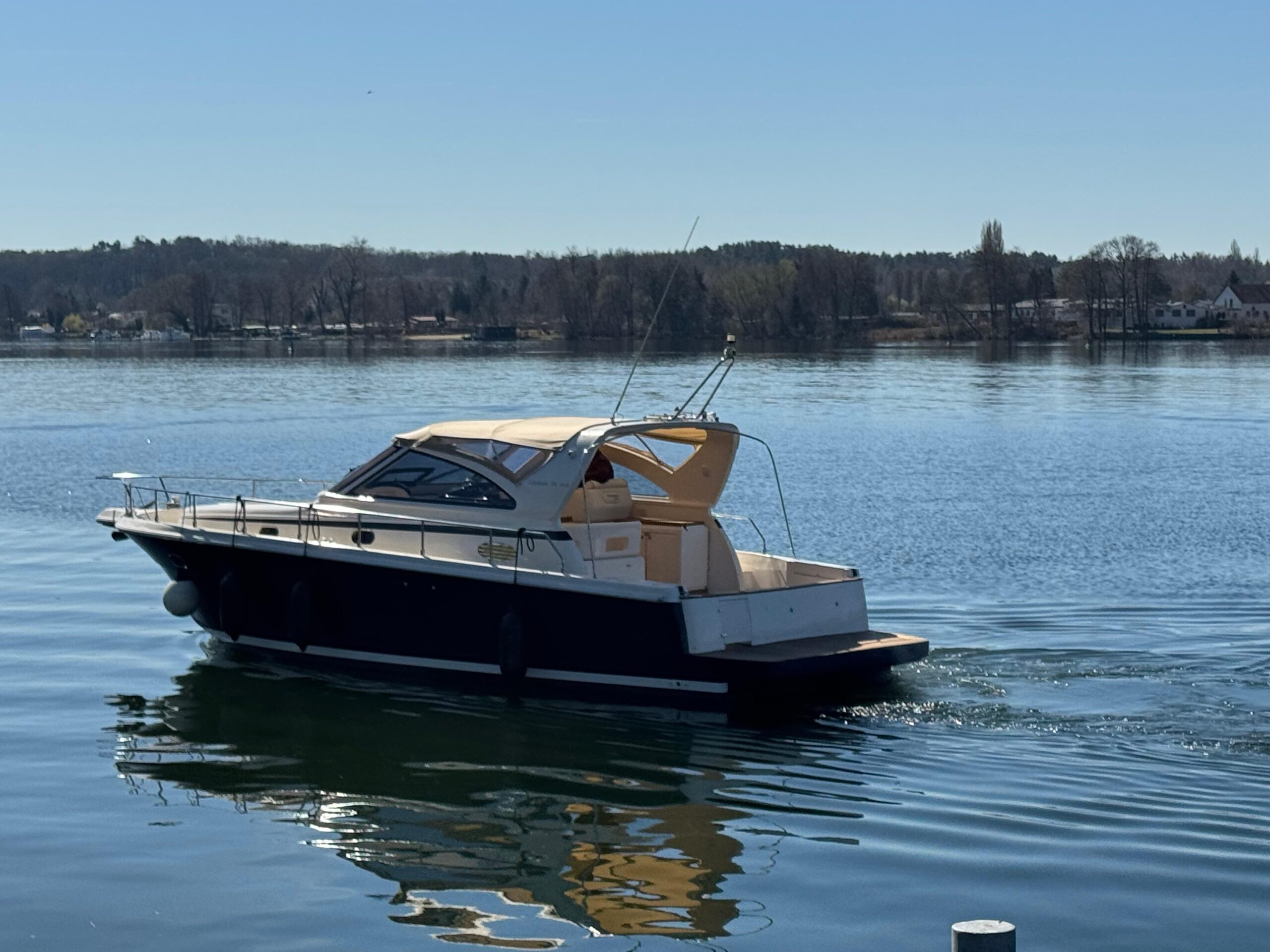 Die Cayman 38 WA ist ein typisches Beispiel für italienischer Yachtbaukunst: stilvoll, praktisch und mit einem Hauch von Luxus. Die hier angebotene Yacht befindet sich in einem einwandfreiem Zustand und hat in diesem Jahr einen vollständigen Service für beide Motoren und die Antriebe erhalten. Zudem wurden allen Textilien an Bord erneuert und sämtliche Holzelemente professionell aufgearbeitet.