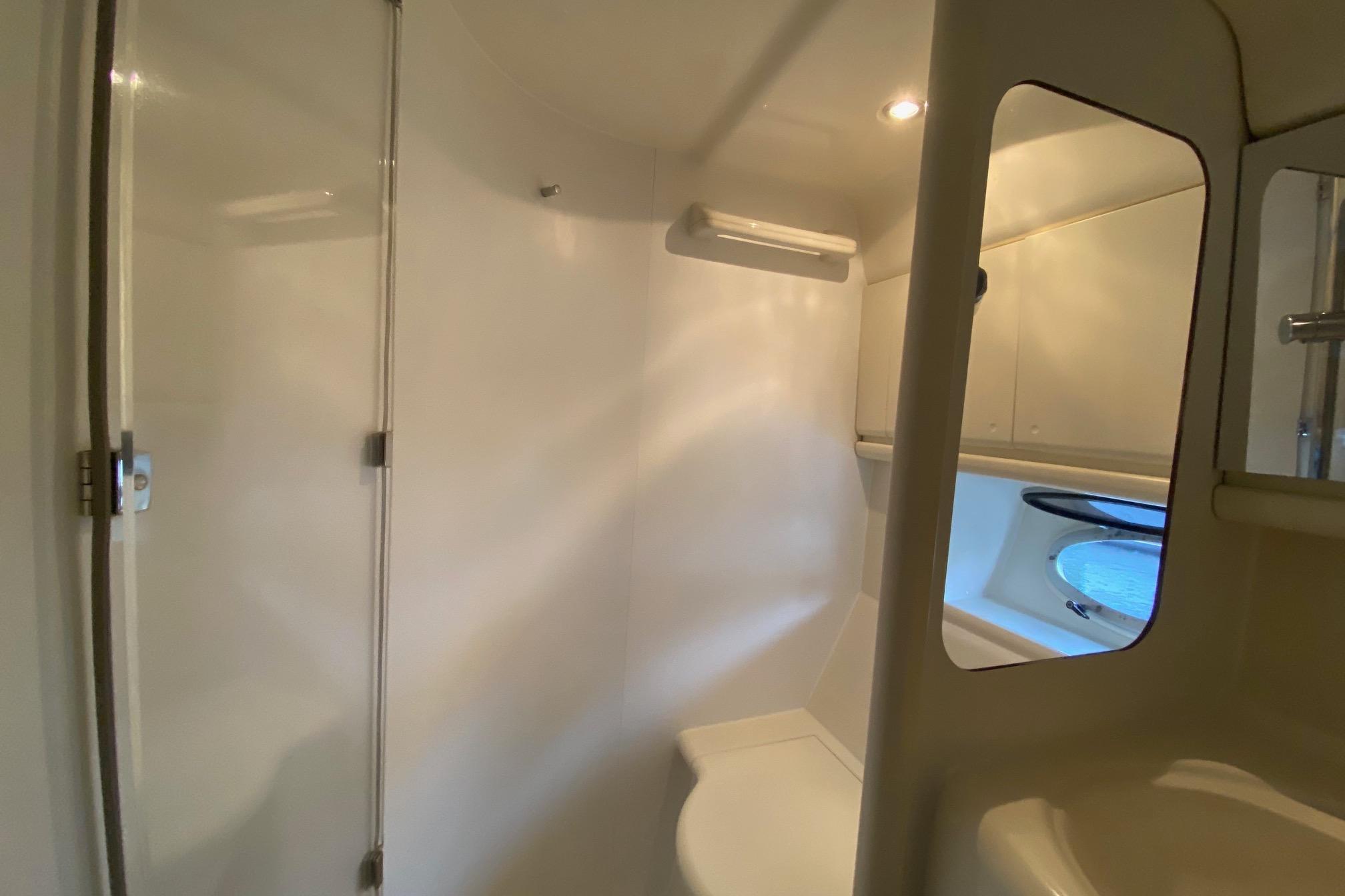 Angetrieben wird die Yacht von zwei Volvo Penta TAMD 63 P Innenbordmotoren mit jeweils 365 PS, die für souveräne Kraftentfaltung, hohe Zuverlässigkeit und sportliche Fahreigenschaften stehen. Eine elektrische Ankerwindeerleichtert das Manövrieren und sorgt für müheloses Ankern, selbst unter anspruchsvolleren Bedingungen.