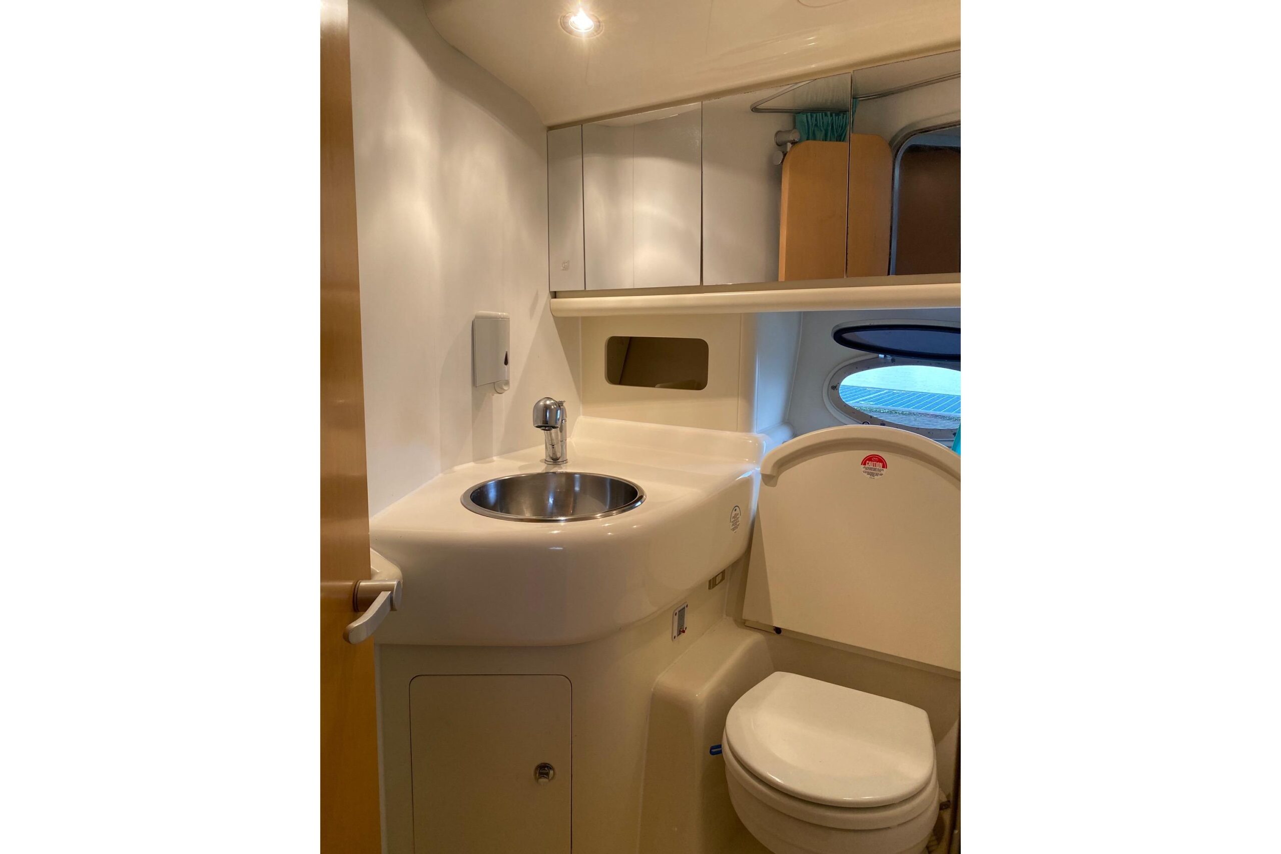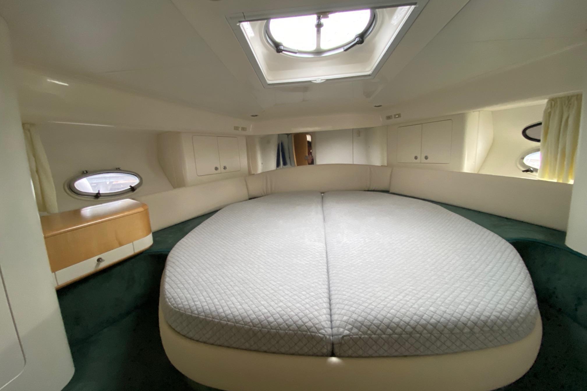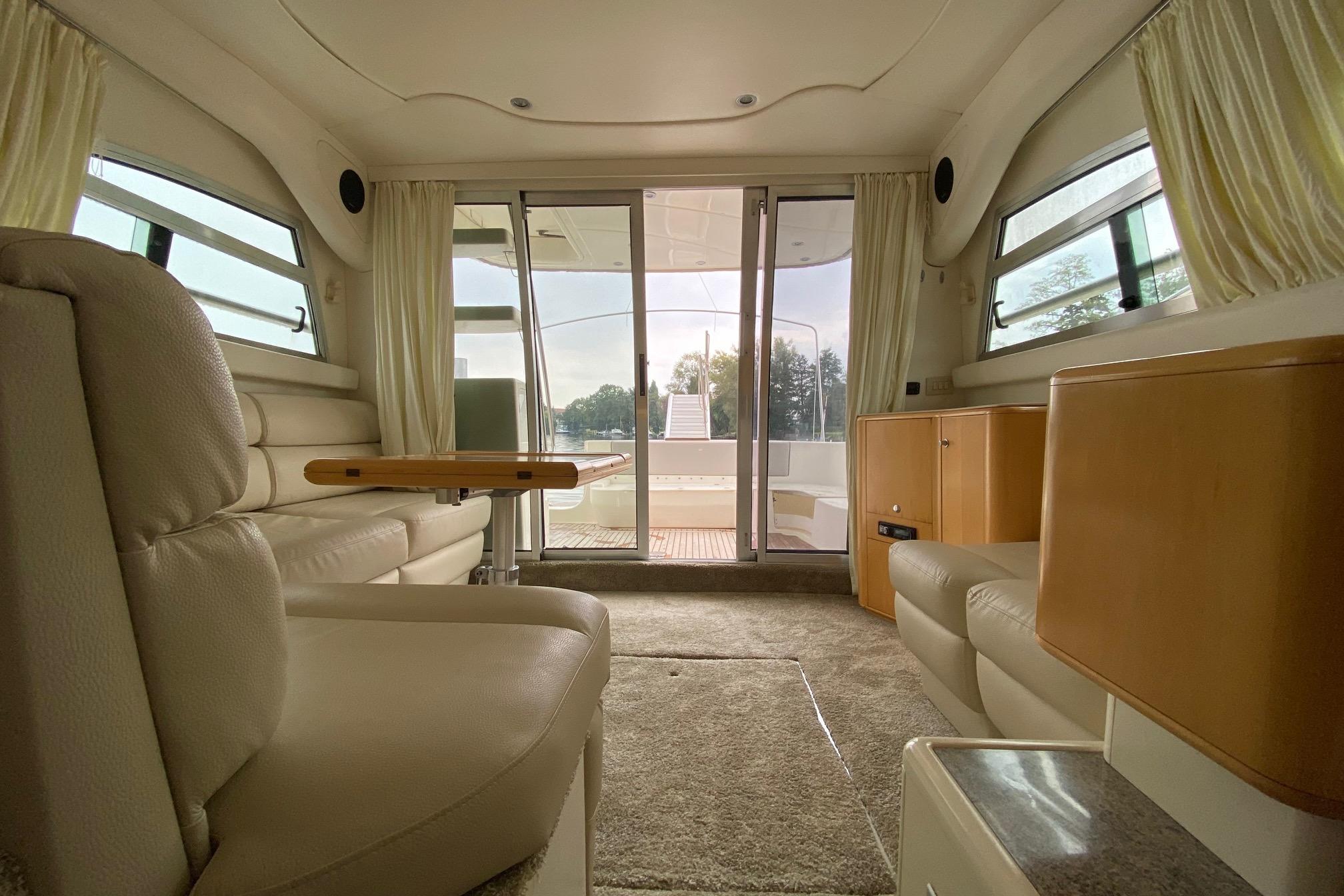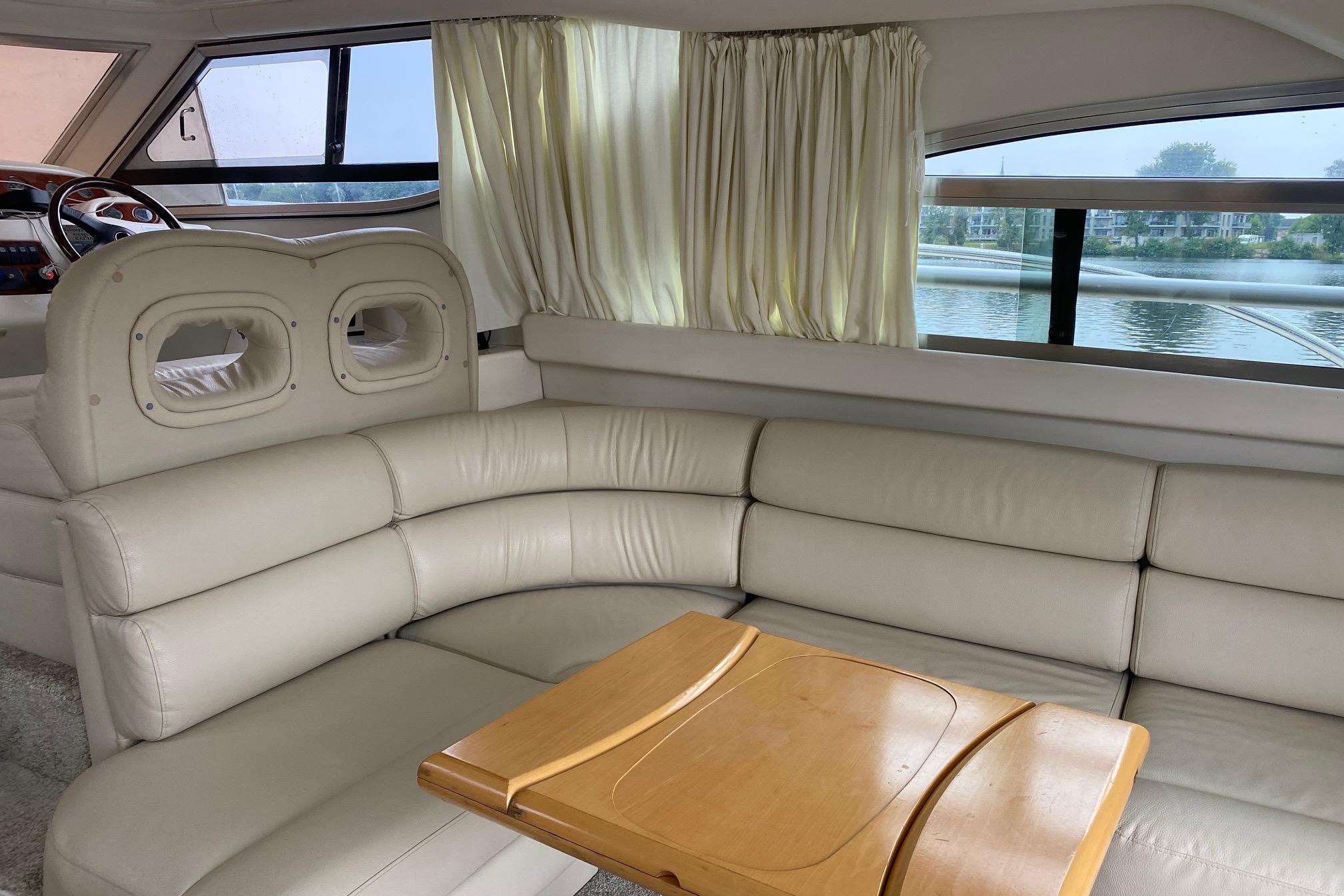 Im hellen Salon erwartet Sie eine gemütliche Sitzgruppe, eine gut ausgestattete Pantry sowie zahlreiche Staumöglichkeiten. Unter Deck stehen zwei komfortable Kabinen bereit, die angenehmen Schlaf- und Rückzugsraum bieten – perfekt für Wochenendtouren oder mehrtägige Reisen. Die hochwertige Verarbeitung zeigt den typischen, zeitlosen Charme klassischer Cranchi-Yachten.