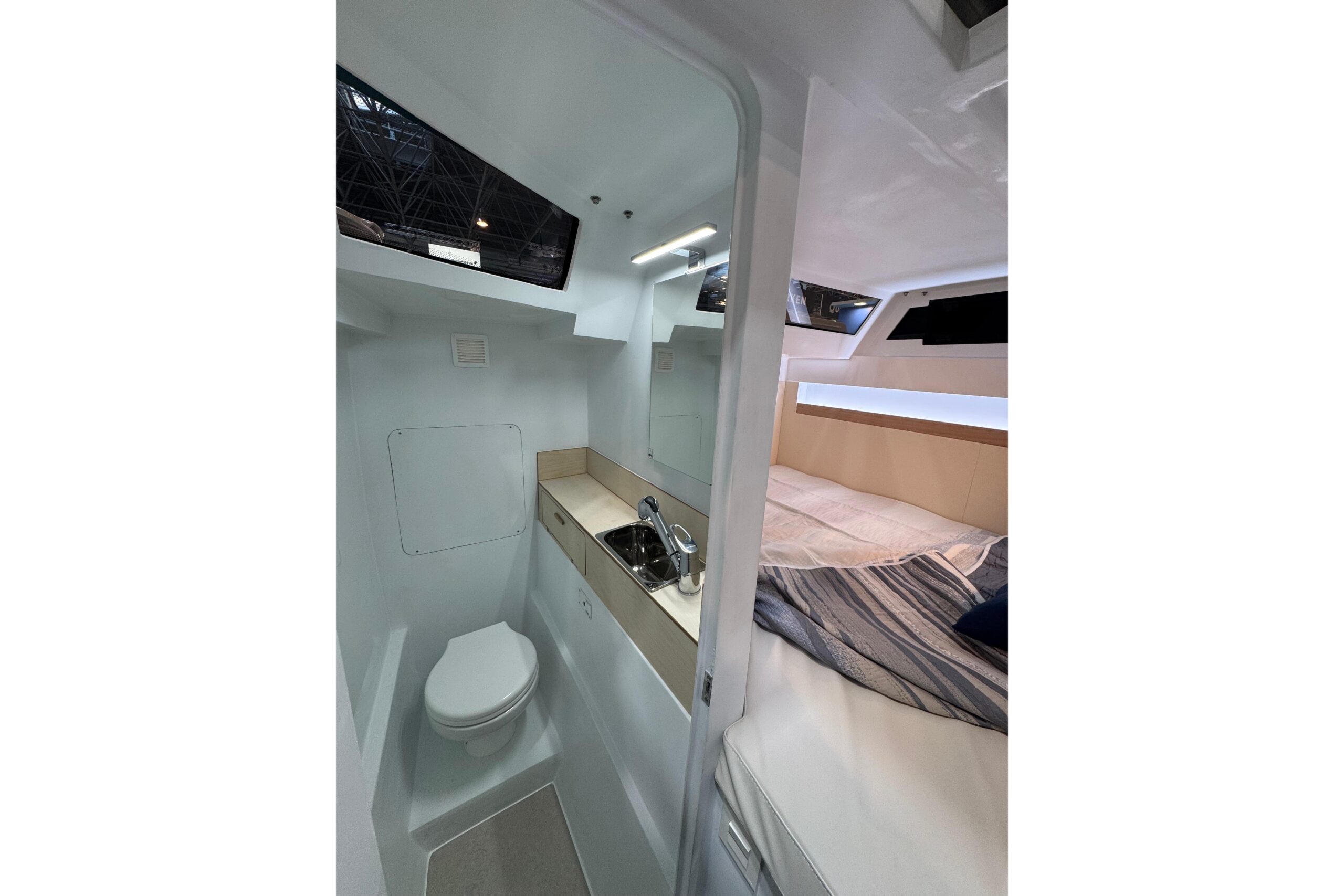 Moderne Navigationssysteme mit großen SIMRAD-Multifunktionsdisplays, Ambientebeleuchtung, Wetbar-Optionen, Kühlschrank sowie Frisch- und Warmwassersysteme sorgen für höchsten Komfort. Die Übernachtungsmöglichkeit an Bord macht spontane Mehrtagestörns besonders angenehm.