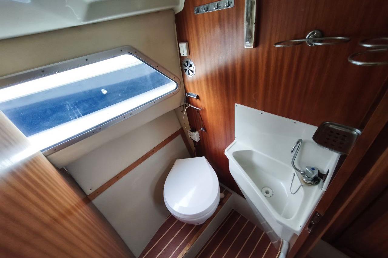 Im großzügigen Cockpit finden Familie und Freunde bequem Platz, während der Innenraum mit Pantry, Sitzgruppe, Schlafplätzen und separatem WC alles bietet, was man für komfortables Cruisen benötigt.