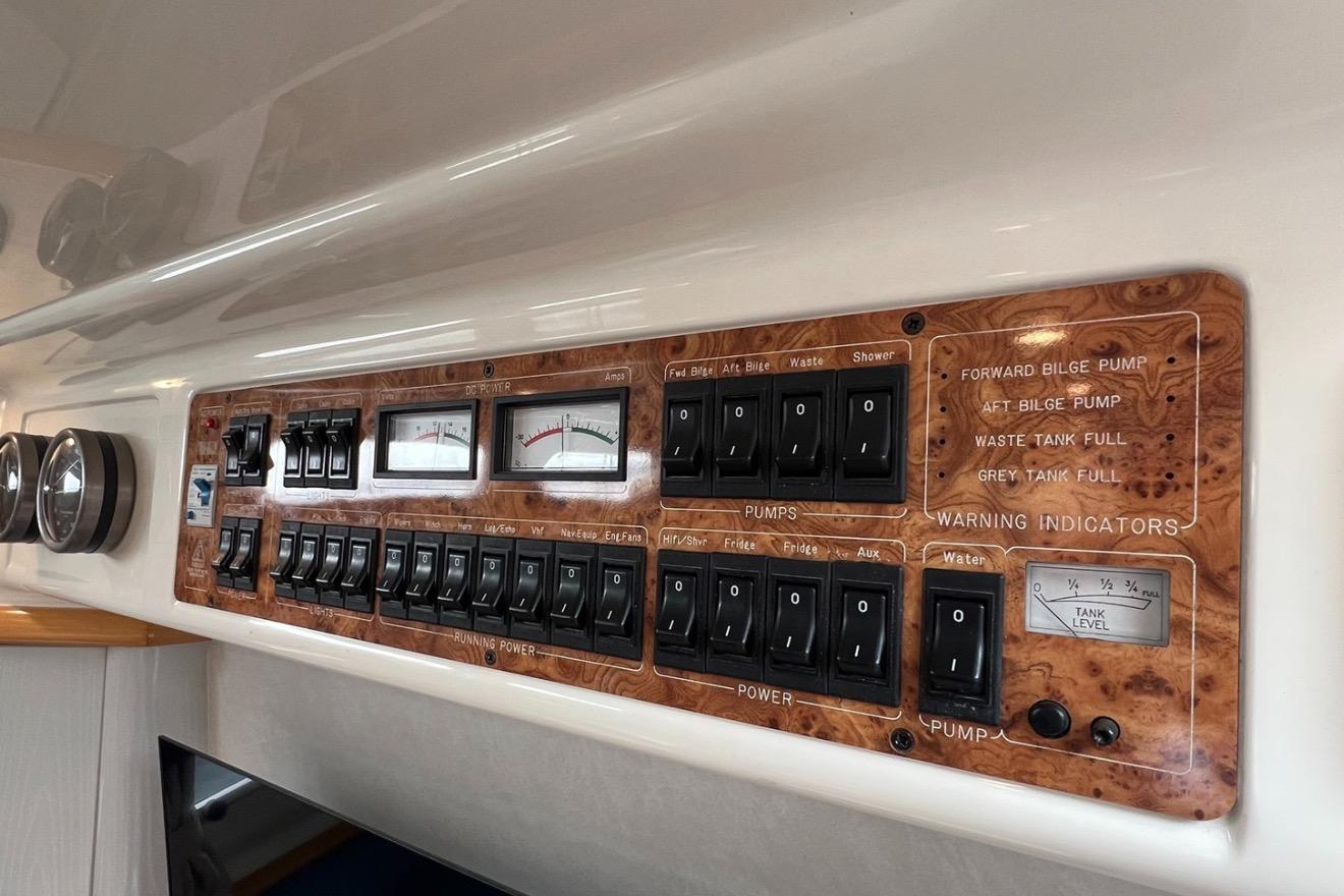 Der Steuerstand bietet einen komfortablen 2-Personen-Pilotsitz mit optimaler Sicht auf alle Instrumente. Das gesamte Cockpit ist mit pflegeleichtem, hochwertigem Teak ausgelegt.