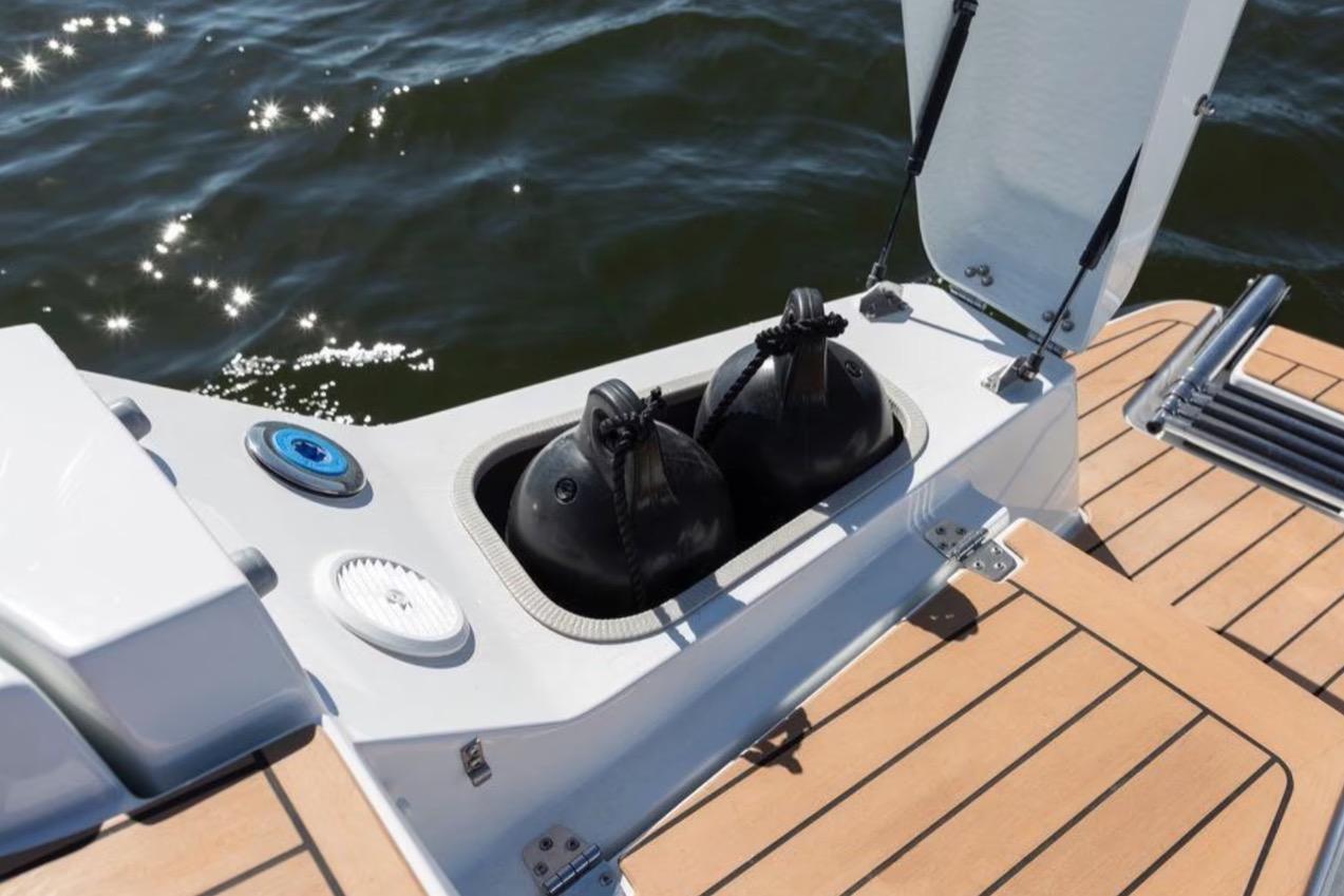 Hydraulische Lenkung, Trimmklappen sowie der Raymarine Axiom 9 RV inkl. CHIRP-Heckgeber sorgen für präzise Kontrolle und moderne Navigation.