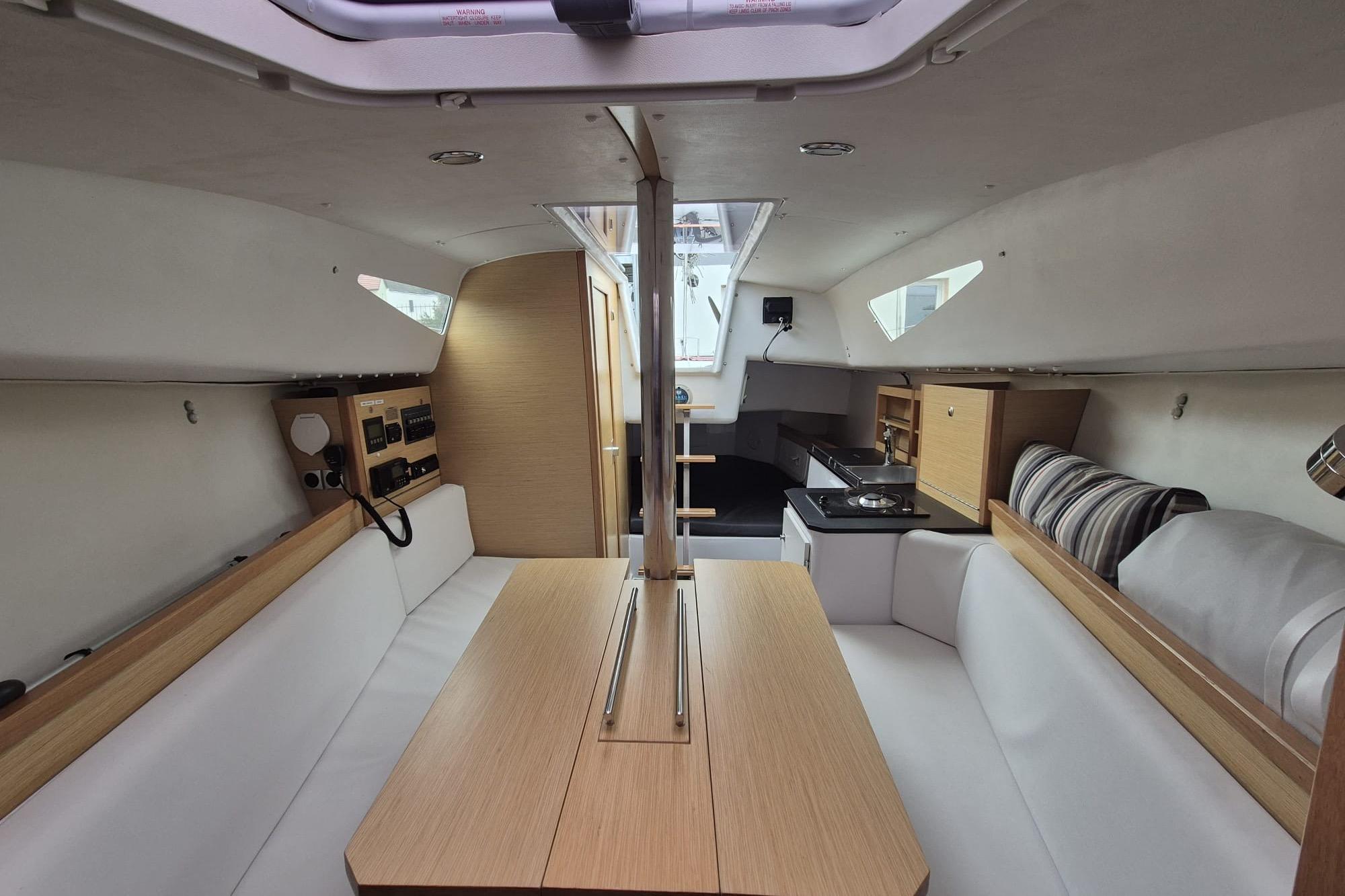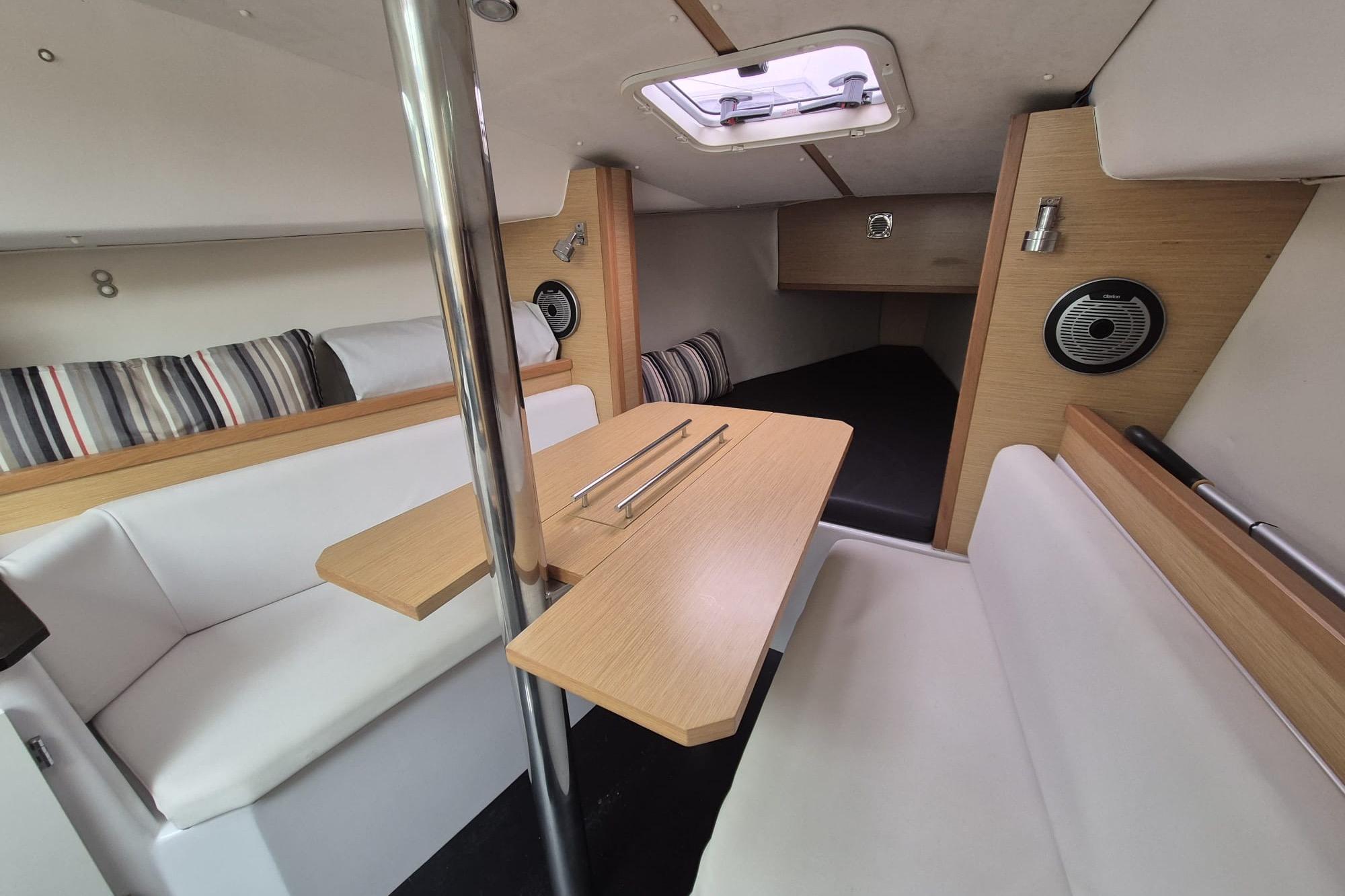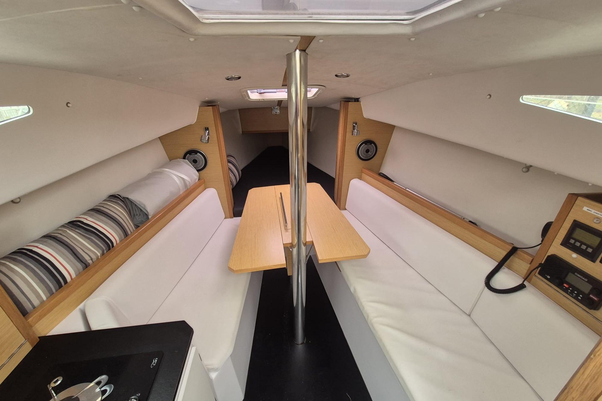 Das Schiff bietet eine gelungene Kombination aus Performance und Komfort. Mit Stehhöhe im Innenraum, separatem Toilettenraum und durchdachter Raumaufteilung eignet sich die Kerkena 7.6 sowohl für ambitionierte Segler als auch für entspannte Wochenendtörns.