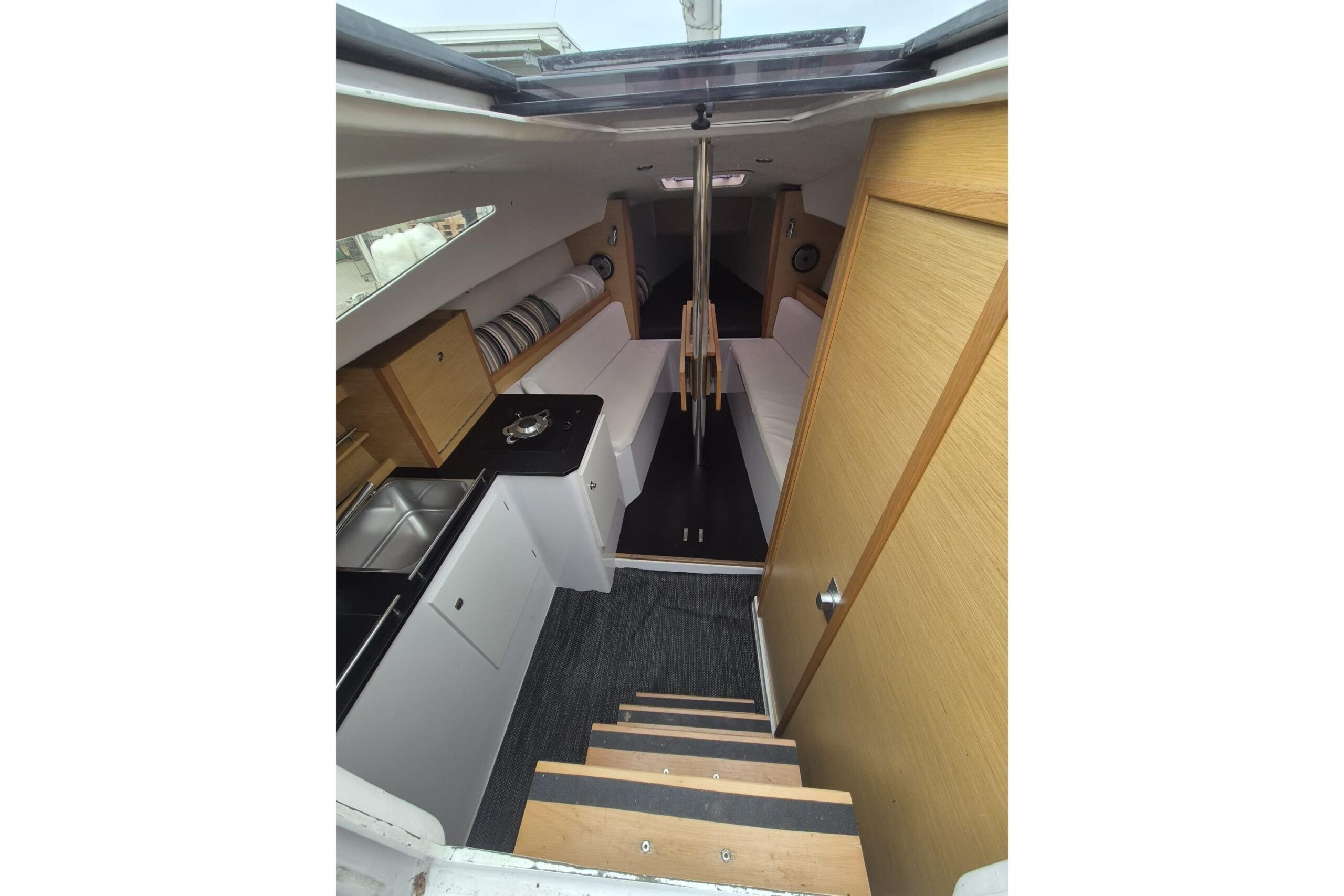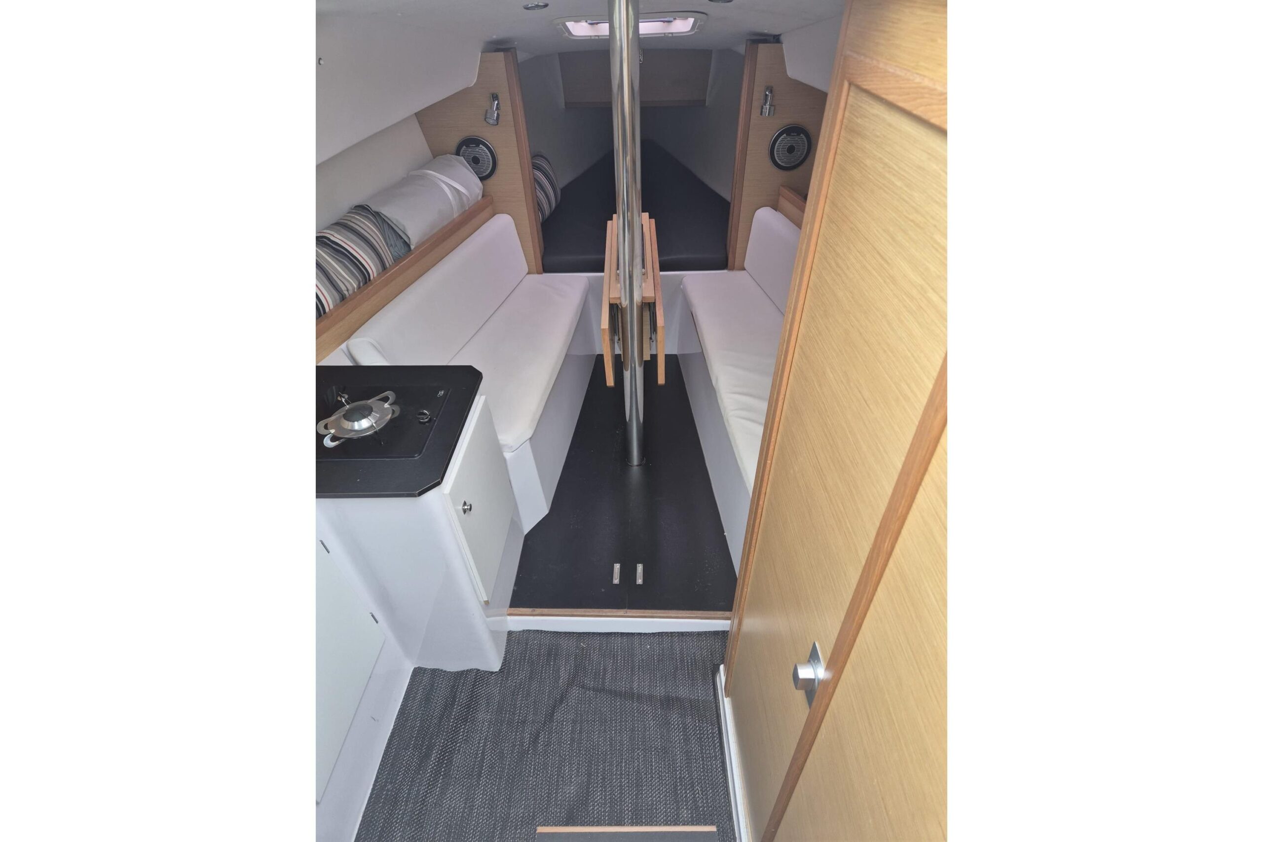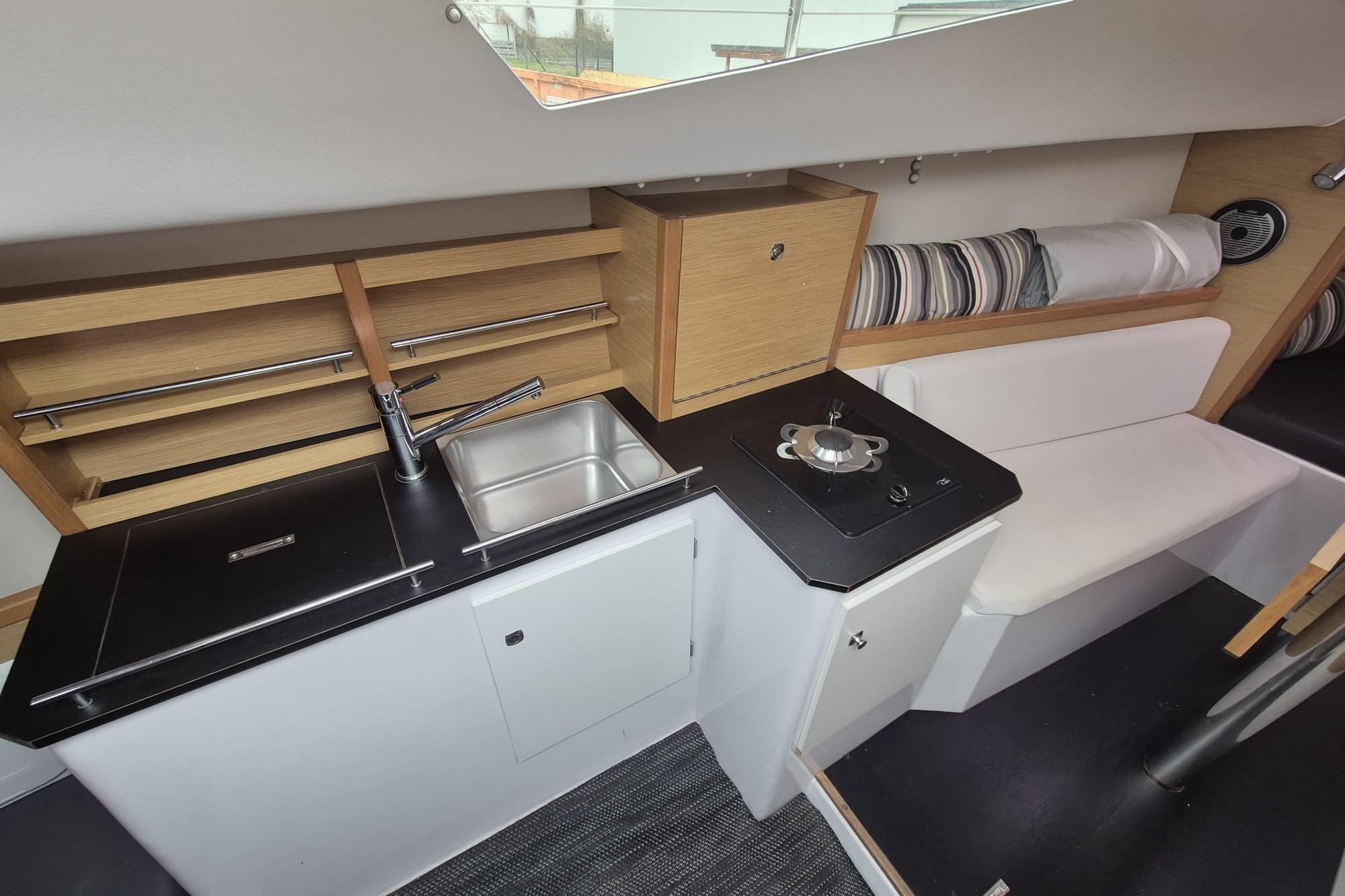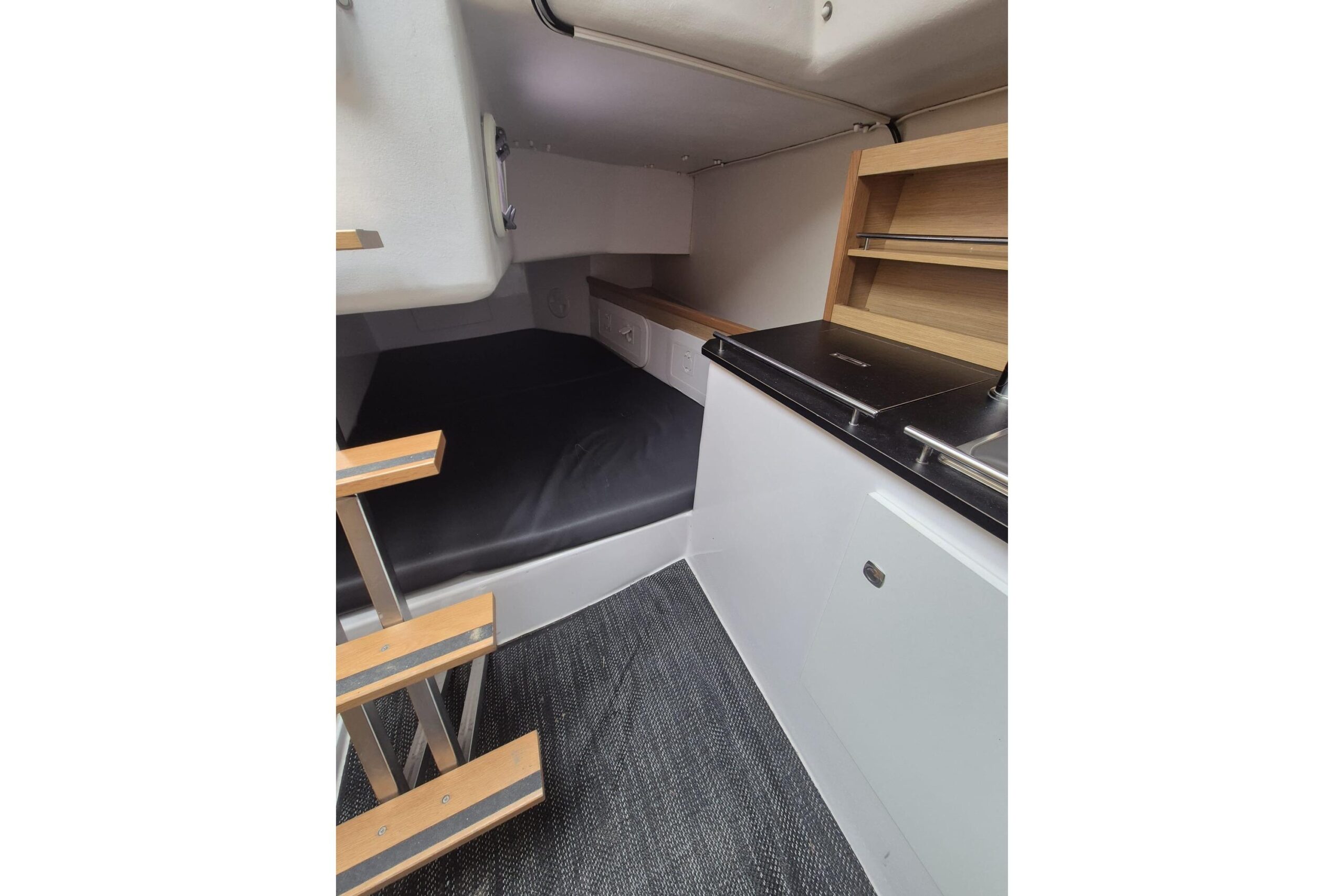 Das Schiff bietet eine gelungene Kombination aus Performance und Komfort. Mit Stehhöhe im Innenraum, separatem Toilettenraum und durchdachter Raumaufteilung eignet sich die Kerkena 7.6 sowohl für ambitionierte Segler als auch für entspannte Wochenendtörns.